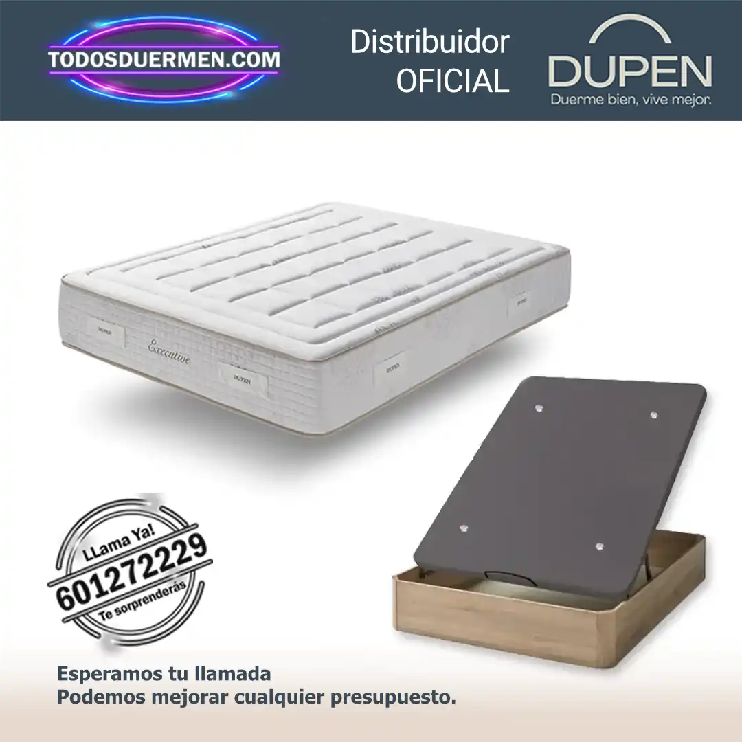 Fabricado en España bajo estrictos controles de calidad, este modelo ha sido desarrollado para responder a las nuevas necesidades del descanso moderno: confort, ventilación, diseño y almacenamiento. Si buscas un colchon firmeza media con muelles ensacados, elegante y funcional, este pack Executive Dupen con canapé abatible es una elección muy sólida dentro del catálogo premium.
