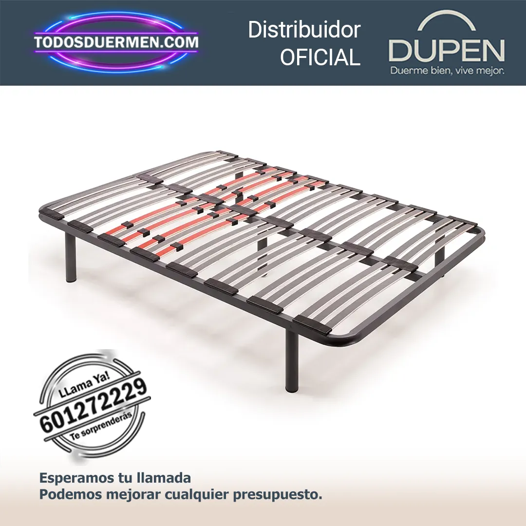 | Tamaños de Bases Dupen | 80×180, 80×190, 80×200, 90×180, 90×190, 90×200, 105×180, 105×190, 105×200, 135×180, 135×190, 135×200, 150×190, 150×200, 150×180, 160×180, 160×190, 160×200, 180×180, 180×190, 180×200 |